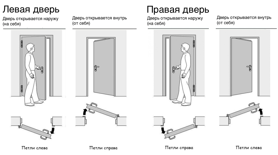 Выбирая двери, определитесь со способом ее открывания. Левая или правая дверь — важно для удобства ее дальнейшей эксплуатации.